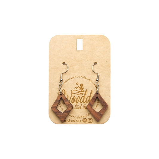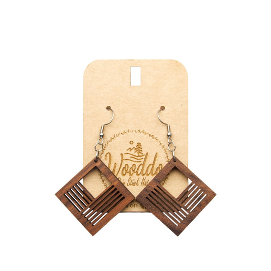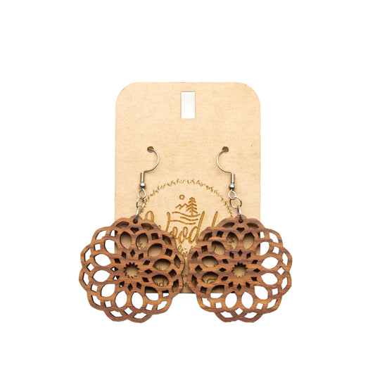 Die Hängeohrringe aus massivem Holz entstehen vom Design bis hin zur Endgültigen Fertigung in der eigenen Manufaktur in Kleinserien.